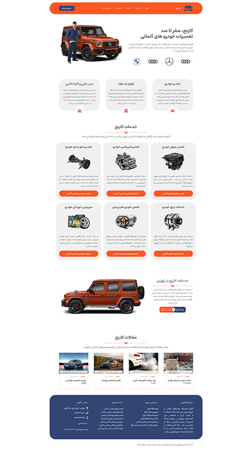 طراحی سایت کارنج به سفارش مدیر این مجموعه توسط واحد طراحی وب سایت دهاستینگ انجام شده است. کارنج یا Careng یک وب سایت تعمیرگاه خودروهای آلمانی در تهران و در دبی می باشد. این وب سایت جهت معرفی خدمات خود در مدل های مختلف خودروها و تعمیرات آن می باشد.